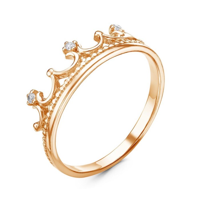 Ring "Crown" mini, pink gilding, white color, 17.5 size