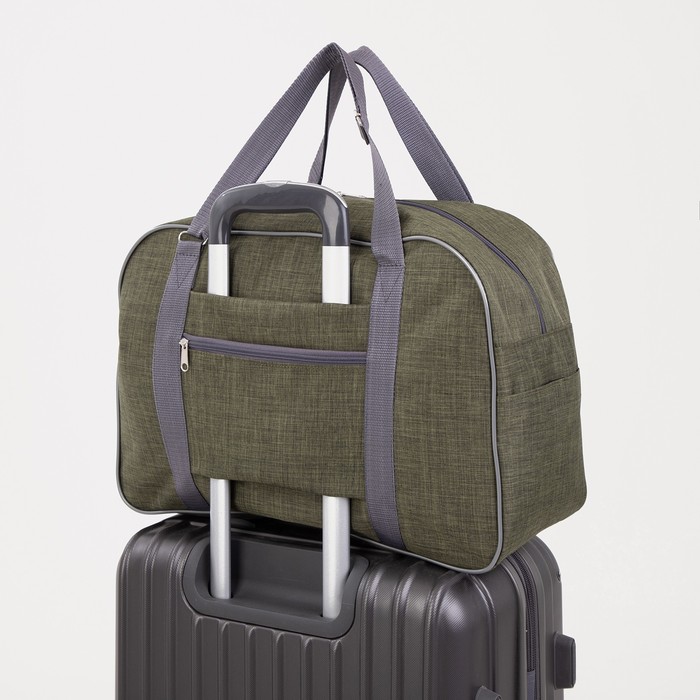 Road bag with lightning, external pocket, suitcase holder, green color