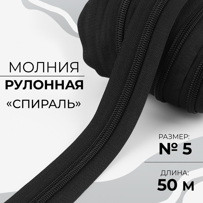 Rolled lightning "Spiral", No. 5, 50 m, black color