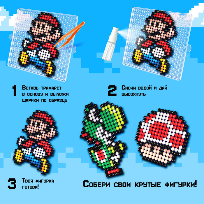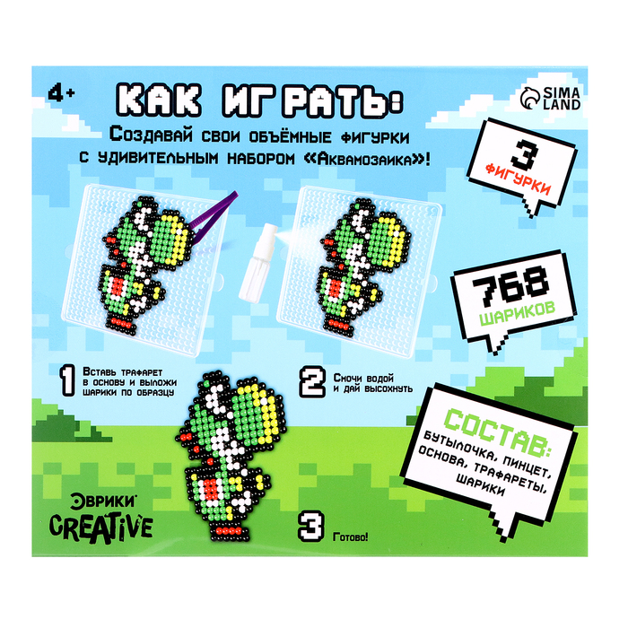 С аквамозаикой от торговой марки «Эврики» ребёнок соберёт объёмные фигурки из шариков-пикселей. Детали плотно скрепляются друг с другом. С поделками можно играть или носить с собой как брелоки.