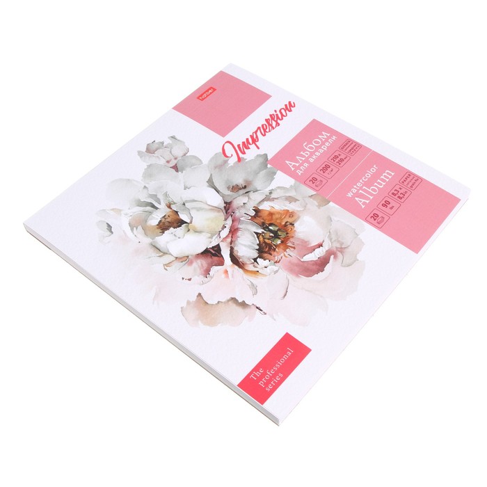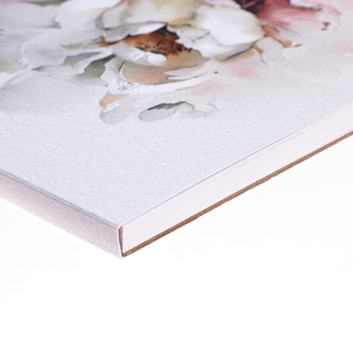 Альбом для акварели 20 листов "Нежный пион", 210 х 210мм, 200г/м2, матовая ламинация, тиснение, жесткая подложка