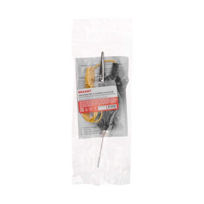 Автотестер универсальный черный (ИГЛА) REXANT предназначен для быстрой и эффективной диагностики электрооборудования автомобилей. Позволяет определить полярность напряжения (+/-), выявить замыкание и обрыв проводки без необходимости размыкать проводку - за счет возможности ввести тонкую иглу непосредственно через изоляцию в проводку или проверить предохранители, лампочки и диоды. Корпус выполнен из ударопрочного пластика и снабжен проводом с зажимом типа «крокодил», светодиодным и звуковым индикатором. Питание: 3 х LR 41.