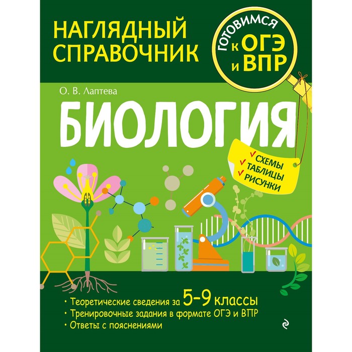 Справочник предназначен для изучения и повторения школьного курса биологии за 5–9 классы. Книга содержит биологические термины, сведения по цитологии, ботанике, зоологии и анатомии. Материалы сопровождаются графической информацией (схемами, рисунками, таблицами), что значительно упрощает понимание и запоминание. В каждой теме представлены тренировочные задания в формате ВПР и ОГЭ, ответы и подробные решения.