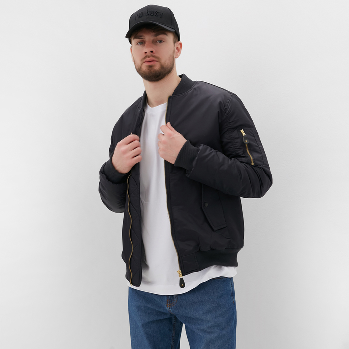 Бомбер мужской на молнии MIST, размер 46, черный
