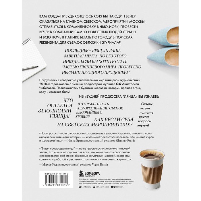 Анастасия Чибисова проработала продюсером журнала GQ больше десяти лет, и на своем примере убедилась, что «жизнь из сериала» на самом деле не такая простая, хоть в ней и хватает по-настоящему сказочных событий. В своей дебютной книге Анастасия не только даёт советы начинающим продюсерам и помогает им погрузиться в профессию, а также рассказывает закулисные истории из мира глянца, которые прежде не были нигде опубликованы. Хотите с головой окунуться в мир светской жизни уже ставших ностальгическими 2010-х годов? Тогда «Будни продюсера глянца» определенно должны стоять на вашей полке.
