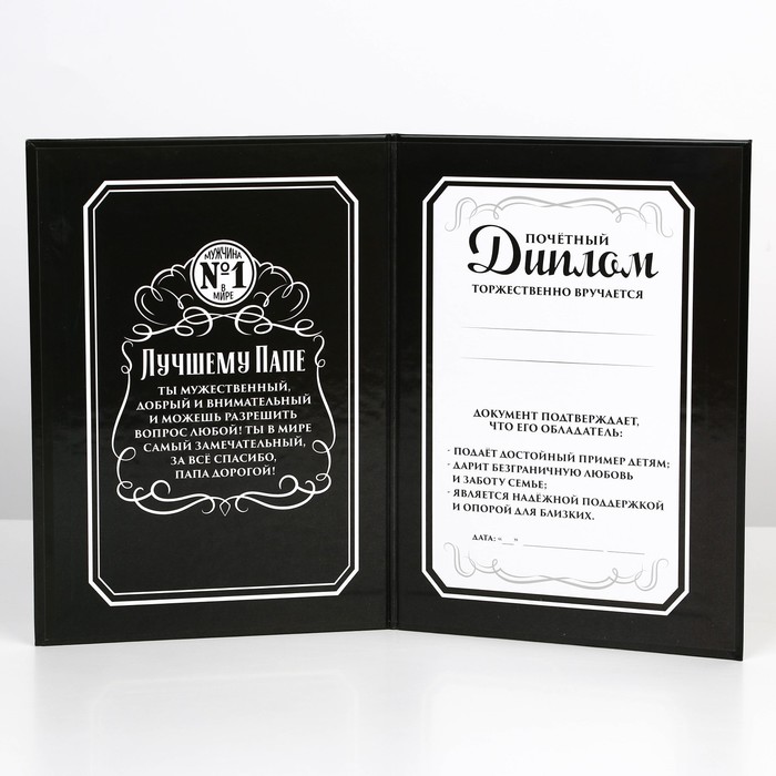 Праздничный диплом — прекрасный вариант оригинального поздравления. Изящные изображения, тёплые искренние слова, поле для имени получателя и список достижений — вот яркие черты этого аксессуара.