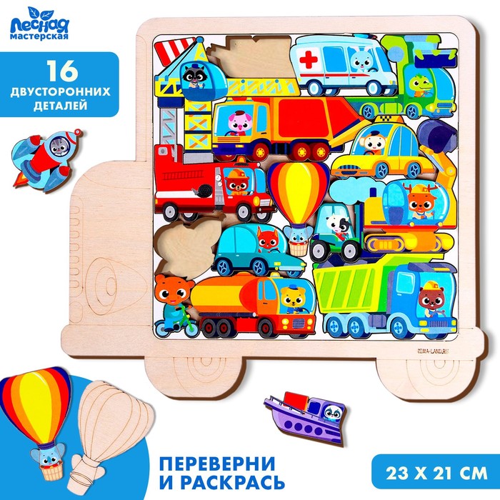 Головоломка из отдельных фигурок - это не только игра в предложенной рамке, но и игра с деталями. Перед сборкой можете спросить у малыша название каждого вида транспорта, где он применяется.