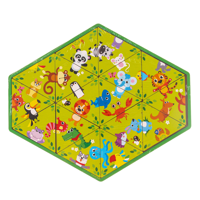 Головоломка из отдельных фигурок - это не только игра в предложенной рамке, но и игра с деталями. Перед сборкой попросите малыша назвать каждое животное, его отличительные черты.