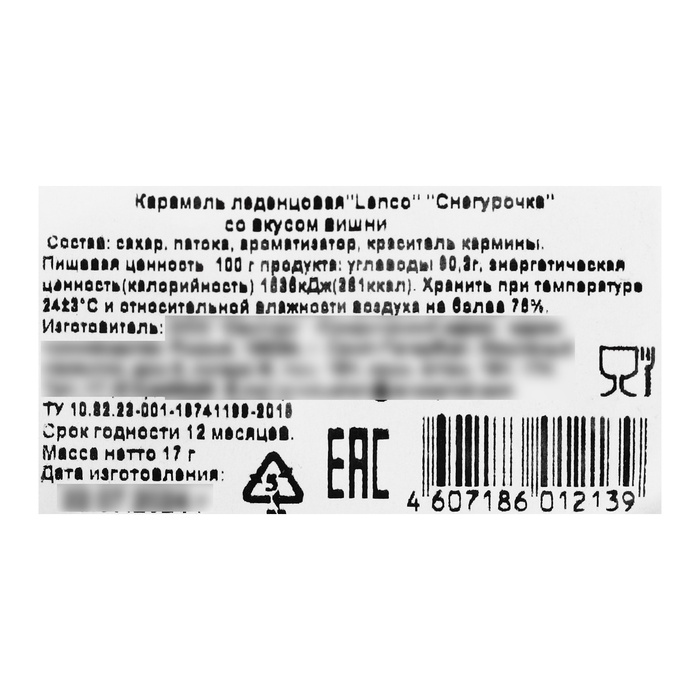 Карамель леденцовая "Снегурочка", 17г