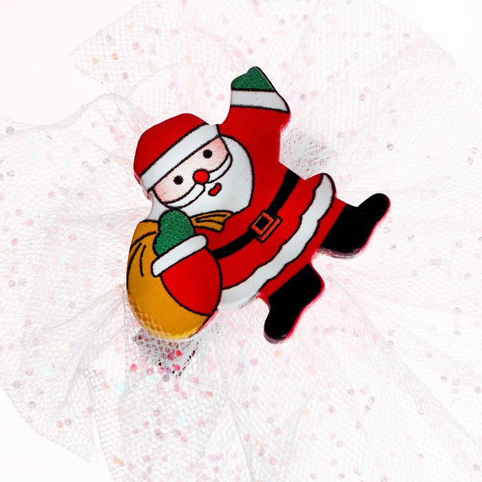 Карнавальный зажим «Дед Мороз» — это яркий и праздничный аксессуар, который идеально подойдет для создания новогоднего образа. Зажим выполнен в виде бантика с Дедом Морозом.