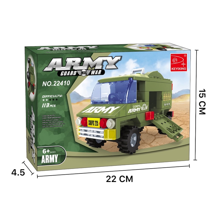 - Набор содержит 113 деталей и позволяет сконструировать бронетехнику и фигурки 2 солдат-разведчиков.