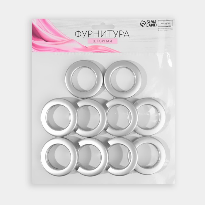 Люверсы для штор, d = 3,4/5,5 см, 10 шт, цвет серебряный