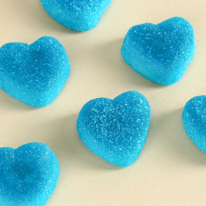 Состав: сироп глюкозы, сахар, вода, желатин, кислота: лимонная кислота, молочная кислота, яблочная кислота; желирующий агент: пектин, регулятор кислотности: малат натрия; ароматизаторы, идентичный натуральным, пищевые красители: синий блестящий FCF.