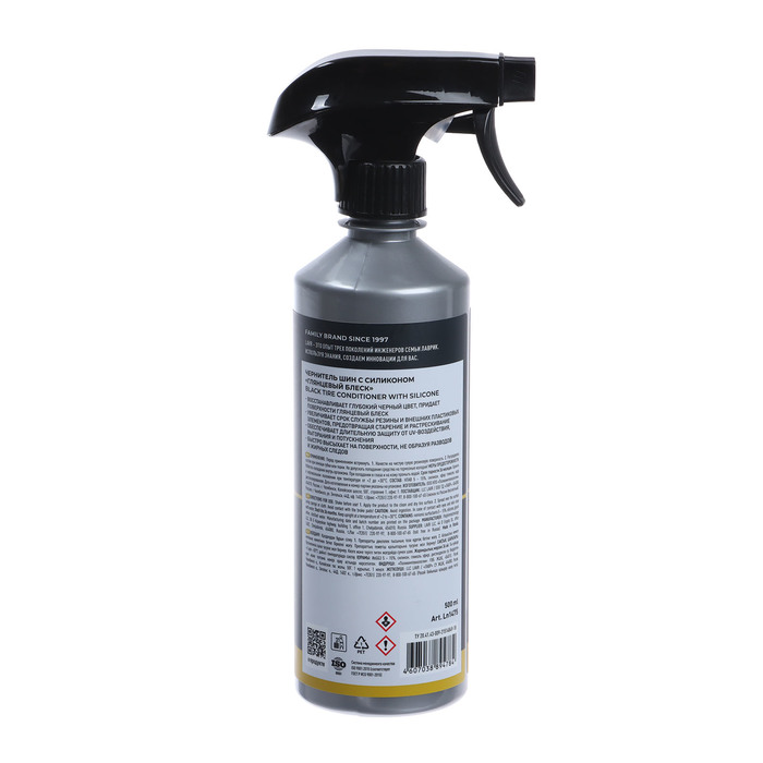 - Чернитель шин LAVR разработан специально для ухода за шинами, молдингами и другими деталями автомобиля. Он создает на поверхности глубокий черный цвет, который защищает от выцветания. Средство легко наносится и быстро сохнет, не оставляя разводов и пятен.