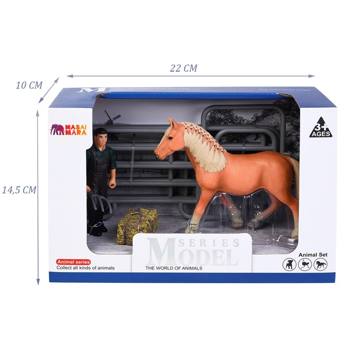 — Фигурки Авелинской лошади, фермера, ограждения, вил и сена являются уменьшенными копиями реальных животных и предметов.