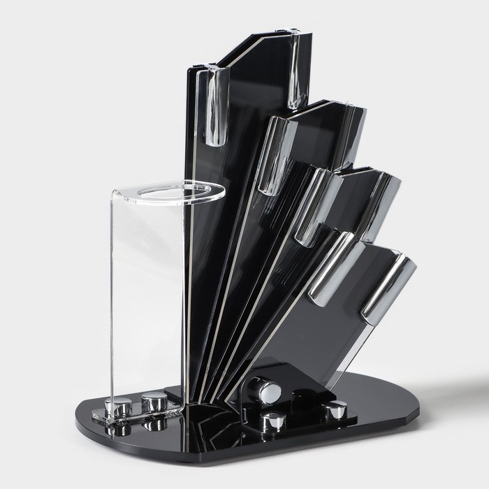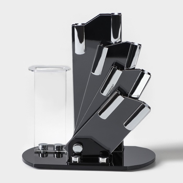 Набор кухонный на подставке Доляна «Симпл», 5 предметов: ножи 7,5 см, 10,5 см, 13,5 см, 15 см, овощечистка, цвет чёрный