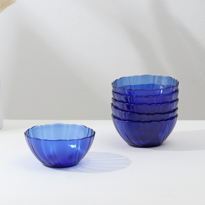 Стекло, из которого изготавливается посуда, является прочным и долговечным материалом, который не впитывает запахи и не влияет на вкус продуктов. Все элементы набора легко мыть, они сохраняют прозрачность и блеск в течение долгого времени. Синий цвет посуды придает ей оригинальность и эстетическую привлекательность.