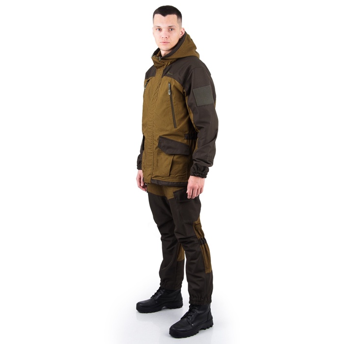 Анатомический крой комплекта обеспечивает полную свободу движений, а ветрозащитная планка надёжно укроет от порывов ветра. Регулируемый капюшон позволит адаптировать костюм под любые погодные условия. Множество функциональных карманов на молниях и кнопках обеспечат удобное хранение всех необходимых мелочей.