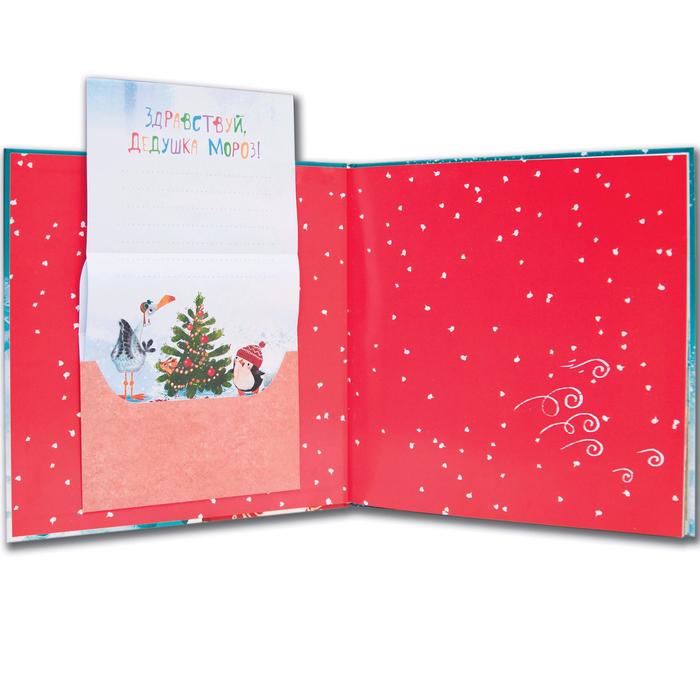 А ещё в книге малыша ждет сюрприз. Он сможет написать письмо Деду Морозу на красивой бумаге, которую найдет на внутренней стороне обложки, и тогда все его желания обязательно исполнятся.