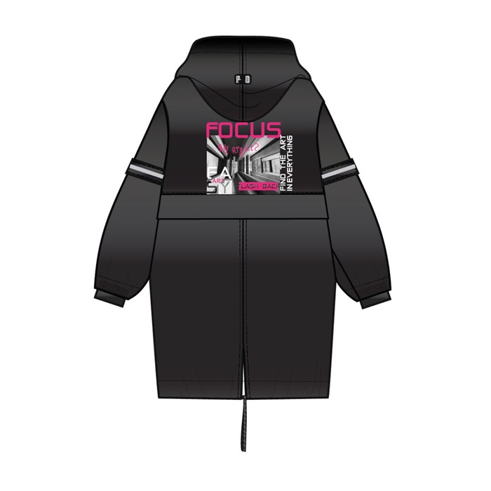 - Капюшон несъёмный, регулируемый утяжкой со стопперами
