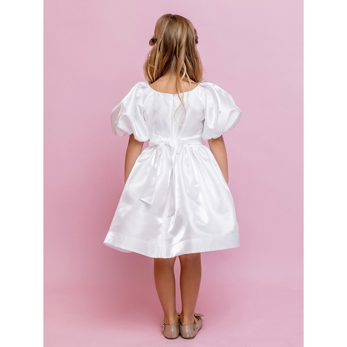 Нарядное платье Batik «Марго» выполнено из матовой органзы и кристалона с пышной юбкой и рукавами. На спинке застёжка на молнию и завязка на бант, чтобы утягивать талию.
