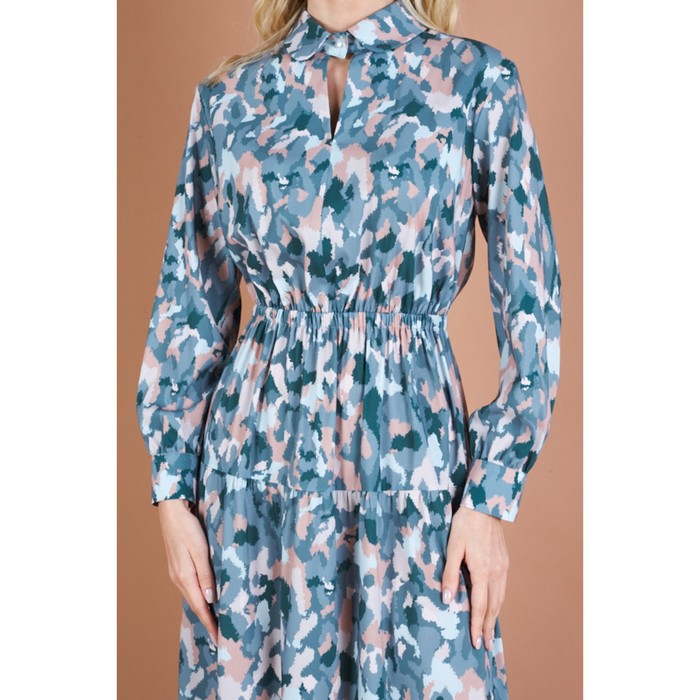 - Платье свободного силуэта выполнено из струящейся плательной ткани.