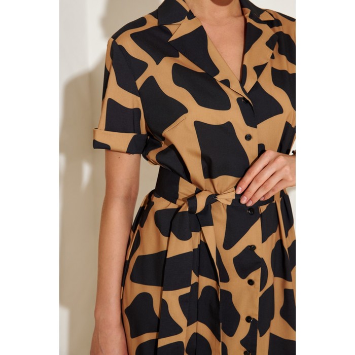 - Платье выполнено из вискозной плательной ткани прямого силуэта с застёжкой на пуговицы.