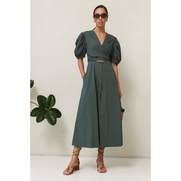 - Платье отрезное по линии талии выполнено из хлопковой ткани.