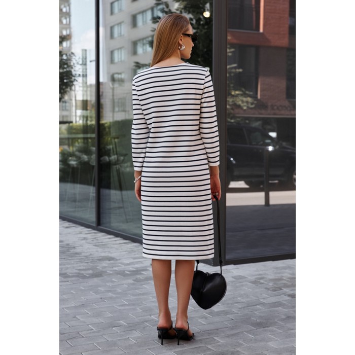 - Платье полуприлегающего силуэта выполнено из эластичного полотна.