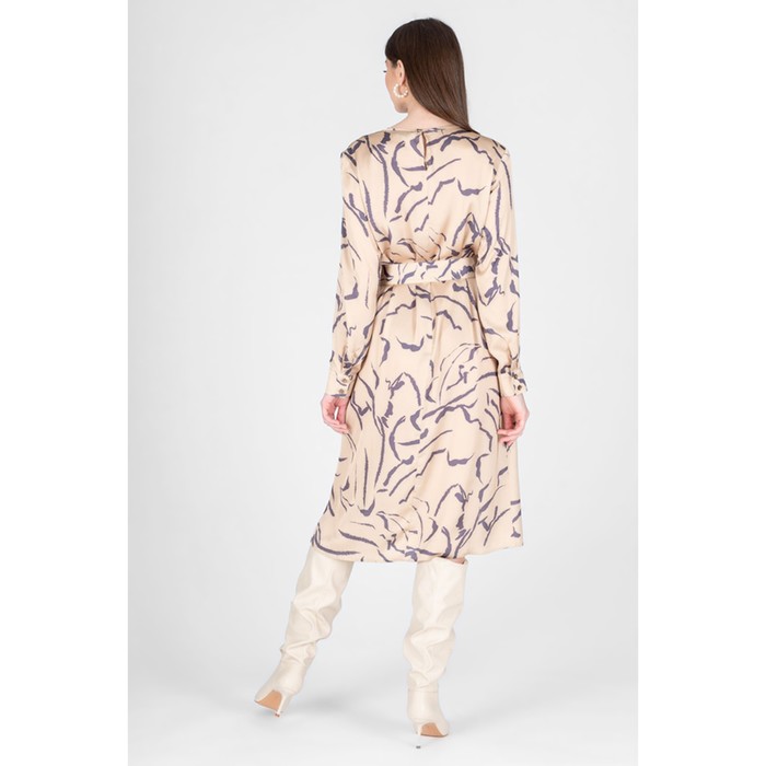- Платье полуприлегающего силуэта, расширенное книзу выполнено из лёгкой атласной плательной ткани.