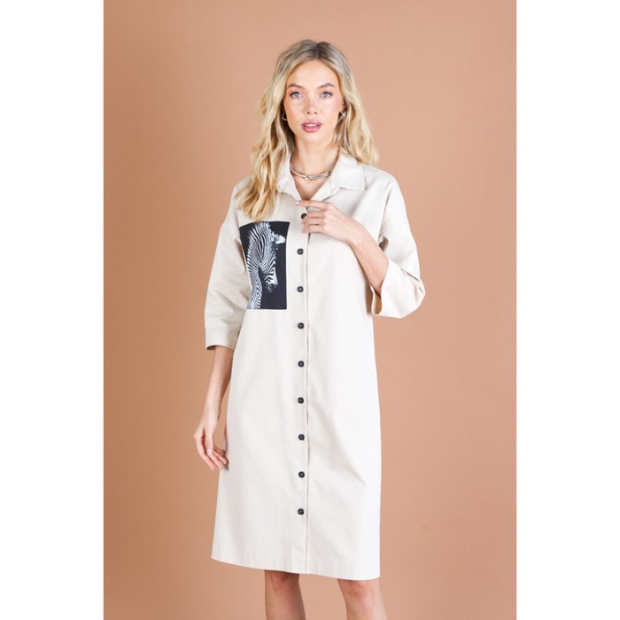 - Платье свободного силуэта с застёжкой на пуговицы выполнено из хлопковой ткани.