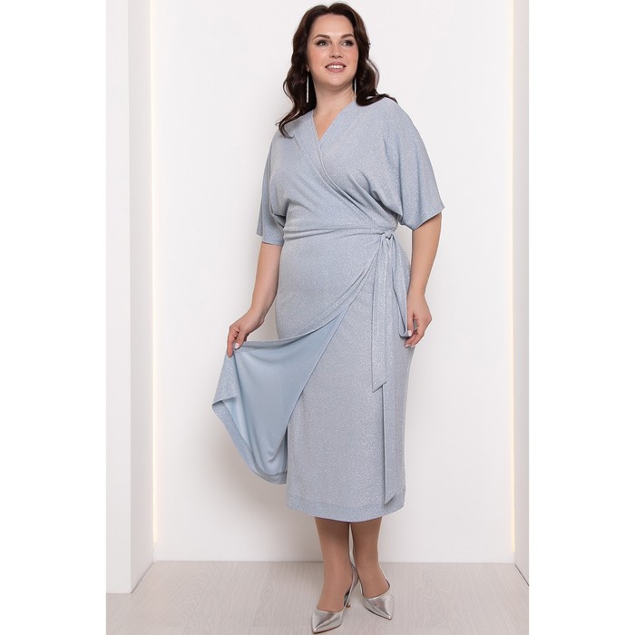 - Платье женское полуприлегающего силуэта из трикотажного полотна с люрексом, отрезное по линии талии, с запахом и завязывающимися полупоясами