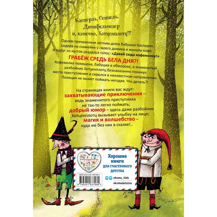 Неуловимый разбойник Хотценплотц разгуливает по округе. Население в панике, а полиция бессильна в его поимке. И вот средь бела дня совершено новое преступление: Хотценплотц крадёт кофемолку и доводит бабушку Касперля до обморока. Больше не в силах терпеть безнаказанность преступника, Касперль и его верный друг Сеппель решают сами отыскать и поймать злостного нарушителя. Вот только разбойник не так прост, как может показаться на первый взгляд, и у него припрятан не один туз в рукаве.