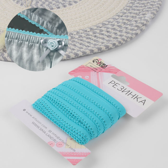 Резинка ажурная, 10 мм, 10 ± 1 м, цвет морская волна