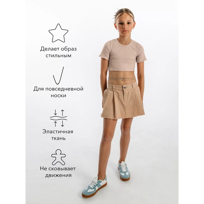 Топ для девочки, рост 134 см, цвет бежевый