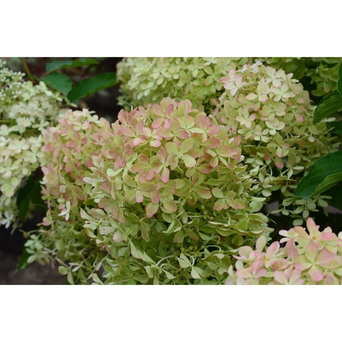 Latin name: Hydrangea Paniculata Magical Lime Sparkle color: white/dark pink/purple; Flowering period: July-August; Flower size: 15-18 cm; Height: 100-150 cm; Sterile flowers with a diameter of 2.6 cm, star -shaped, at the beginning of flowering are white, then lime, by the end of flowering gradually blush. Barrow inflorescences, 22 cm long and 18 cm in diameter. Flowering in July-August. The shoots are strong, erect. The bush is very compact, dense, grows to a height of 150 cm and a width of 120 cm. The place is sunny or semi -shaped. The soil is wet, drained. Zone 5 (up to -23 ° C).100 The maximum height of an adult plant: 150 Minimum width of an adult plant: Maximum width of an adult plant: frost resistance: 6A Zone of the disease/pests: Place of planting: Sun/Posya required watering: desirable soil, soil, soil, soil, soil, soil, soil, soil, soil, soil, soil, soil. drained