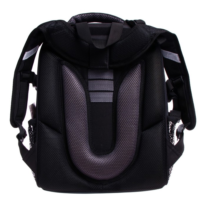 durable formed The walls and the bottom of the satchel allow you to reliably protect the contents from moisture, pollution and prevent its jamming. A satchel with two spacious departments closing on reversible plastic zipper with metal "runners"; In the first-“floating” partitions for notebooks and textbooks, in the second-a large pocket of grid and organizers for stationery. A dense back with anatomical elements is additionally strengthened by plastic, on top-a breathing three-layer grid.