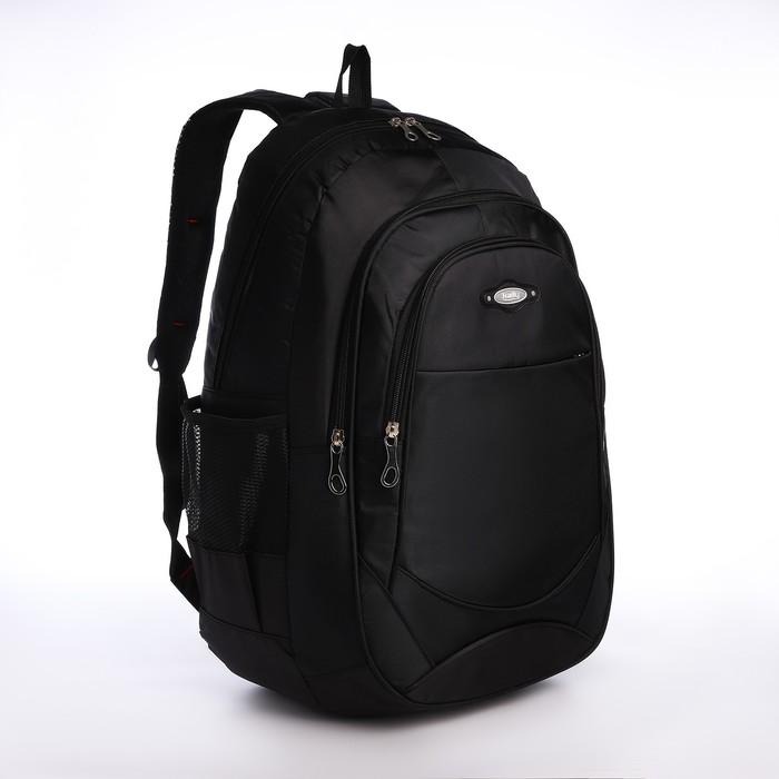 School backpack from textiles with a zipper, 4 pockets, black color