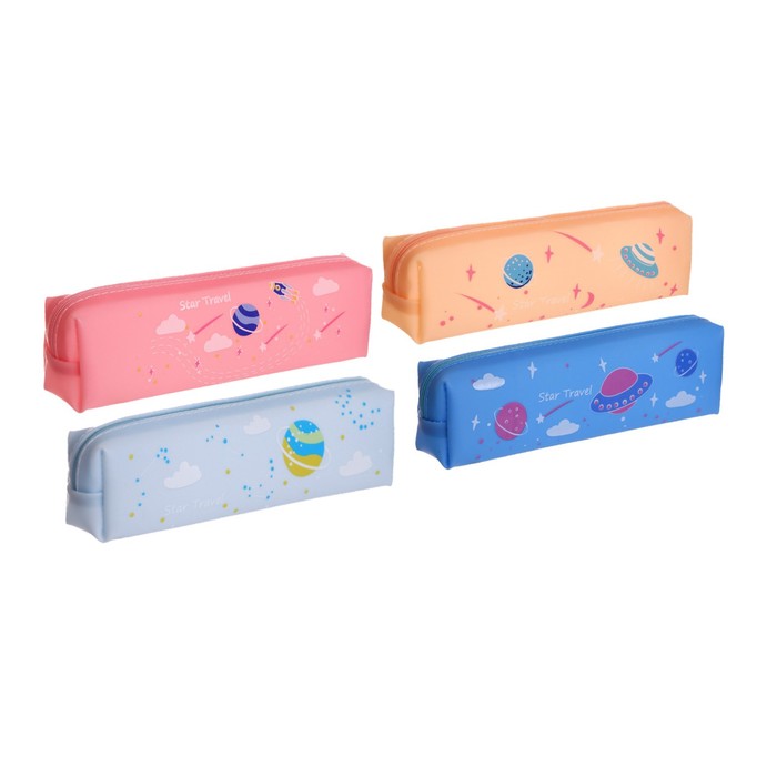 a rectangular pencil case with one spacious compartment is fastened with a convenient runner.