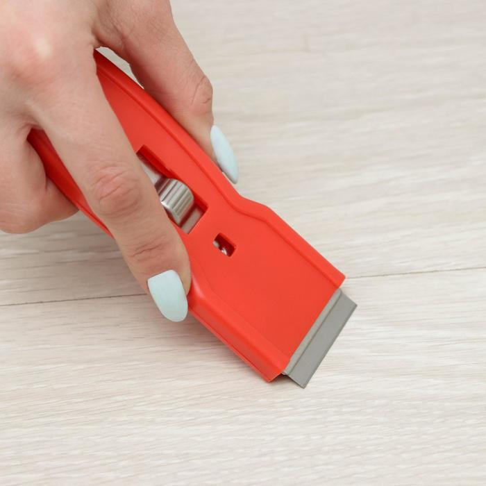 A scrap for windows with a steel blade is an ideal tool for cleaning glasses, walls and floors from various pollution.