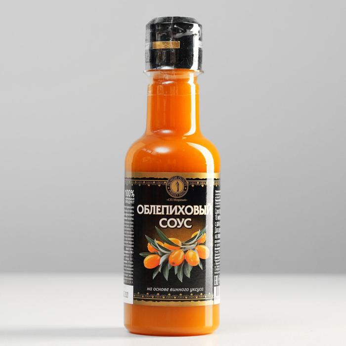 Composition: sea buckthorn, natural wine vinegar, sugar. The mass fraction of acetic acid 1 %. The taste and color of the sauce can differ slightly depending on the sea buckthorn variety. It is possible to include hard -parted sea buckthorn and exfoliation of the liquid phase.