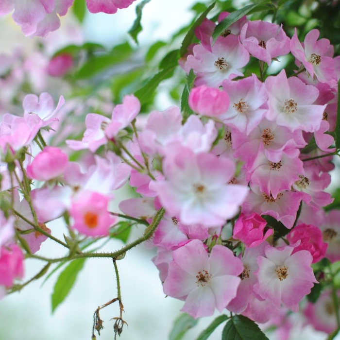 An excellent, unusual rose that has gained popularity around the world. It develops perfectly in any climate. Numerous flowers are collected in inflorescences, painted in a pale pink tint, with a raspberry reverse. The bush is hardy and healthy, well lean. The foliage is green, brilliant. The variety is recommended for single and group landings.
