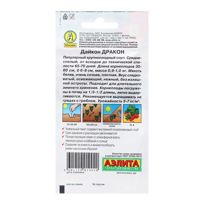 "Semya Daikon Dragon is a variety of radish seeds, which is distinguished by its unique characteristics and attractive appearance. This variety was specially designed for lovers of vegetables who want to grow unusual and tasty plants in their garden or garden.