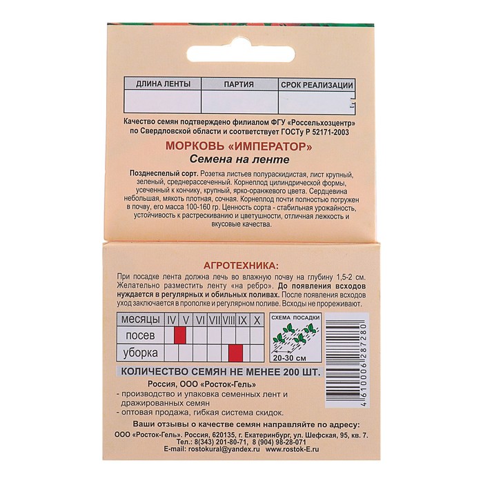late-ripening (120-135 days from seedlings to harvesting) variety. The rosette of the leaves is semi -abominable. The root crime is orange-red, long, 25-30 cm, cylindrical with a slightly pointed tip (Berlikum variety), weighing 90-100 g. The pulp is dense, sweet, fragrant, juicy. Advantages of the variety: aligned root crops with a high sugar and carotene content, retain commodity and taste qualities until spring. Recommended for fresh consumption, cooking juices and long -term storage. Sowing seeds in the ground is carried out in late April-early May to a depth of 1 cm, the distance between rows 18-20 cm. Productivity 2-4 kg/m2.