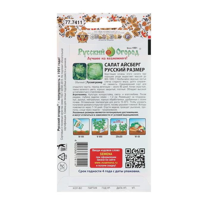 Seeds Salad Russian size "Iceberg", 0.3 g