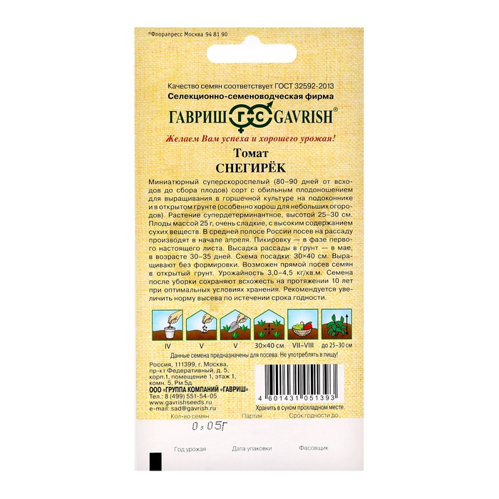 Snegirek is an early -ripening variety of tomatoes with a high content of dry substances. Technical ripeness occurs on the 80–90th day from seedlings. The height of the plant is 25-30 cm.