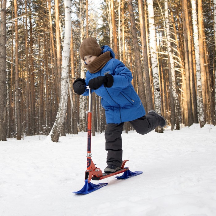 Children's Self-Cat Association is a new model for summer and winter outdoor activities. The design is a scooter frame on which skis are installed. The front ski is controlled by the rotation of the steering wheel. The wheels can be installed at any time, for this there is everything you need.