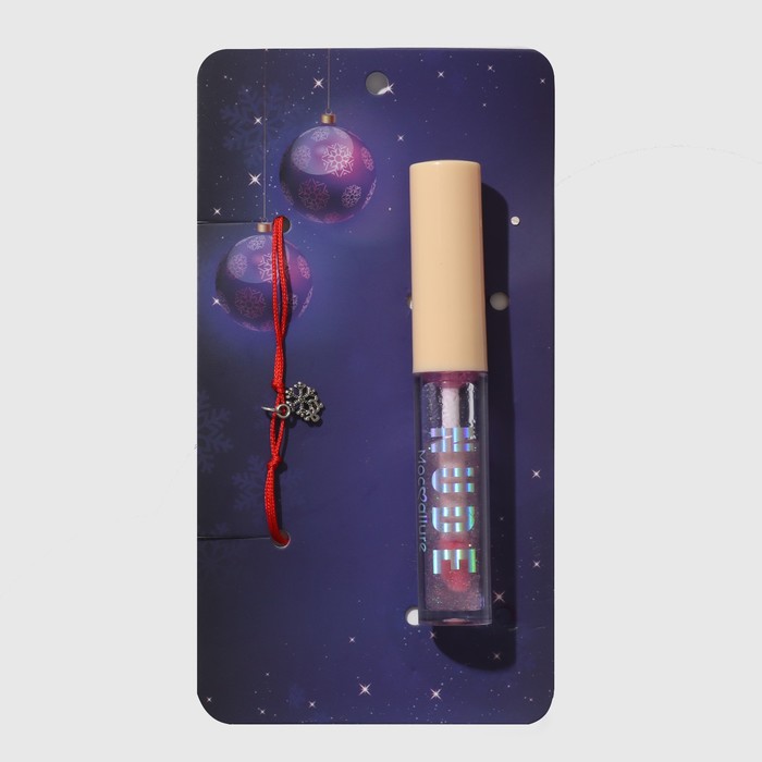 Set 2 objects: bracelet, lip gloss "snowflake", red color with silver, 6 cm