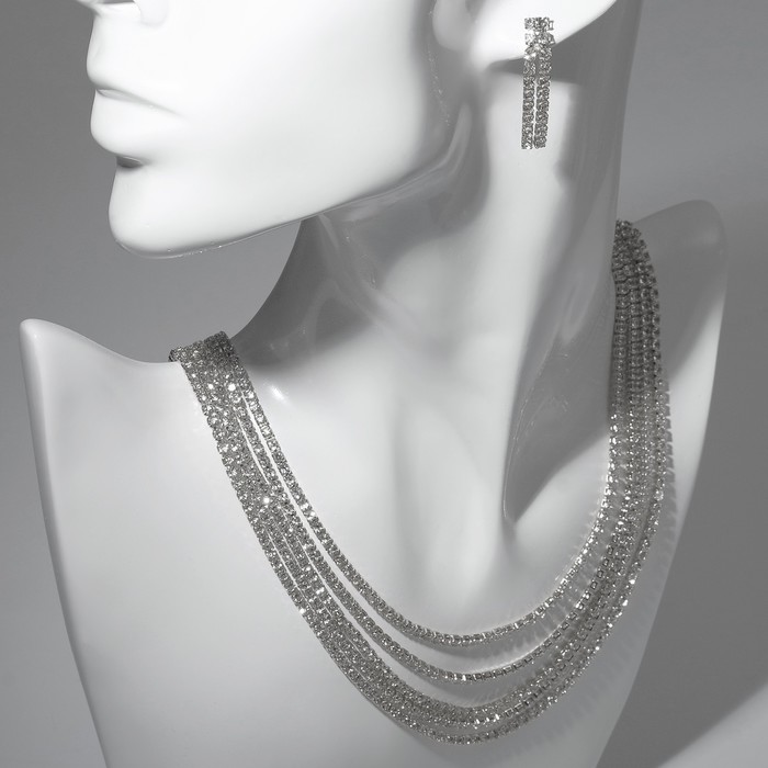 Set 2 objects: earrings, Kilence "Waterfall" five threads, white color in silver, 40 cm