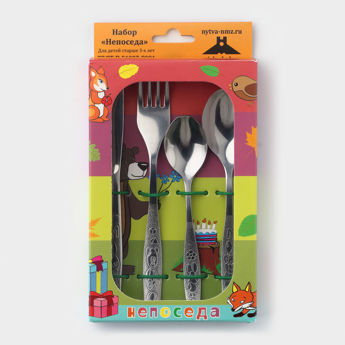 The proposed series includes dessert and tablespoons and forks, as well as a miniature knife. So that the baby does not get injured while eating, sharp cloves of the forks and the knife blade are neatly blunt. The “like adults” are remarkable assistants to caring parents and significantly accelerate the process of teaching the child to independently feed.